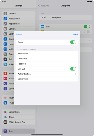 Press Username and key in the username for your email account. Please note that if you're using Vodafone's outgoing server, leave the username field empty.