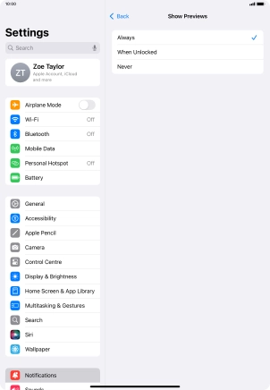 To select notification preview on the lock screen, press Always.