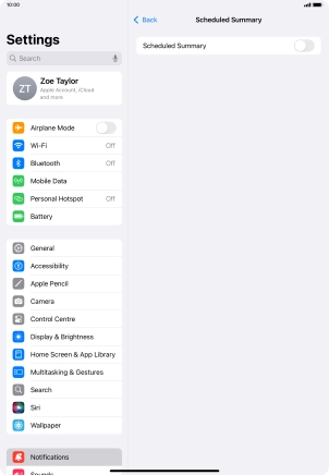 Press the indicator next to "Scheduled Summary" to turn on the function and follow the instructions on the screen to set the notification summary.