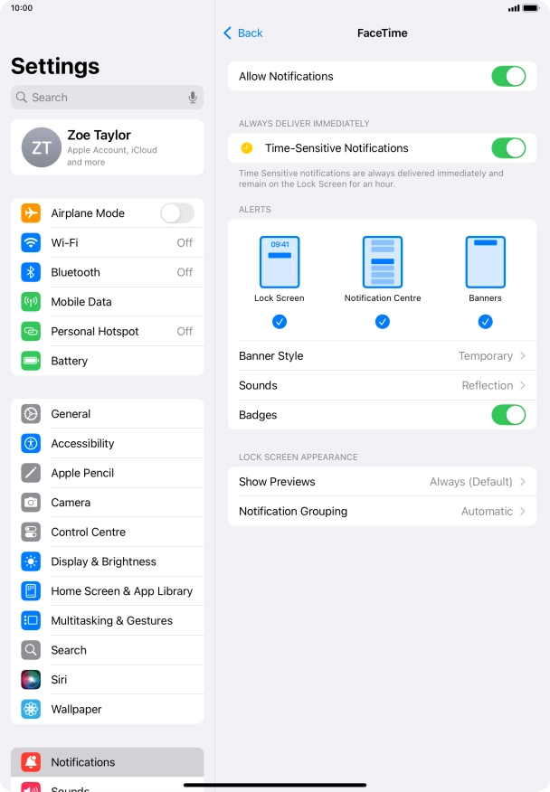 Press the indicator next to "Time-Sensitive Notifications" to turn the function on or off.
