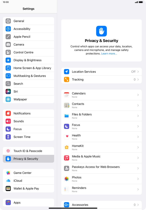 Press Privacy & Security.