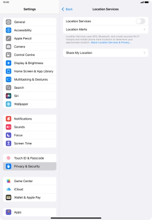 Press the indicator next to "Location Services" to turn the function on or off.