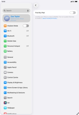 If you turn on offline finding, your tablet can use other nearby Apple devices to register its current position via Bluetooth. To use the function, your tablet and Bluetooth need to be turned on.