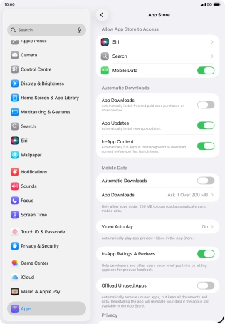 Press the indicator next to "Automatic Downloads" to turn the function on or off.