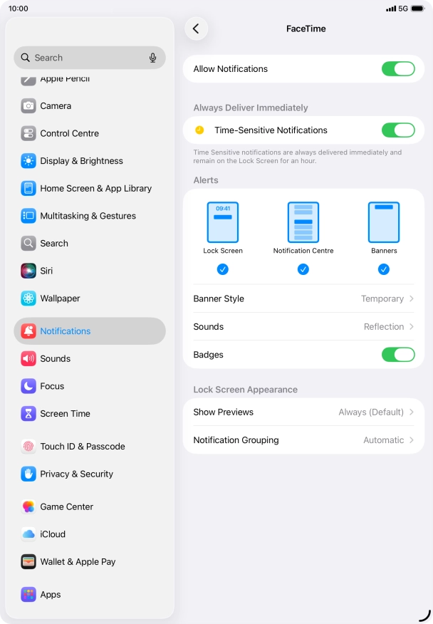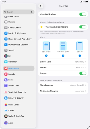 Press the indicator next to "Time-Sensitive Notifications" to turn the function on or off.