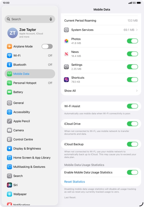 Press the indicator next to "Wi-Fi Assist" to turn the function on or off.
