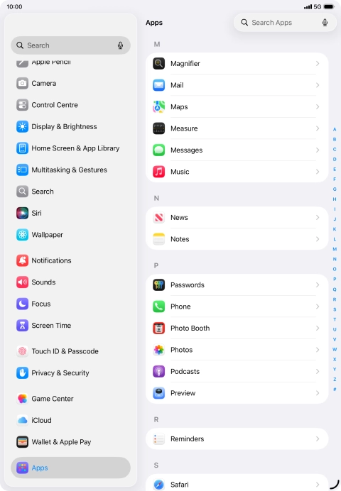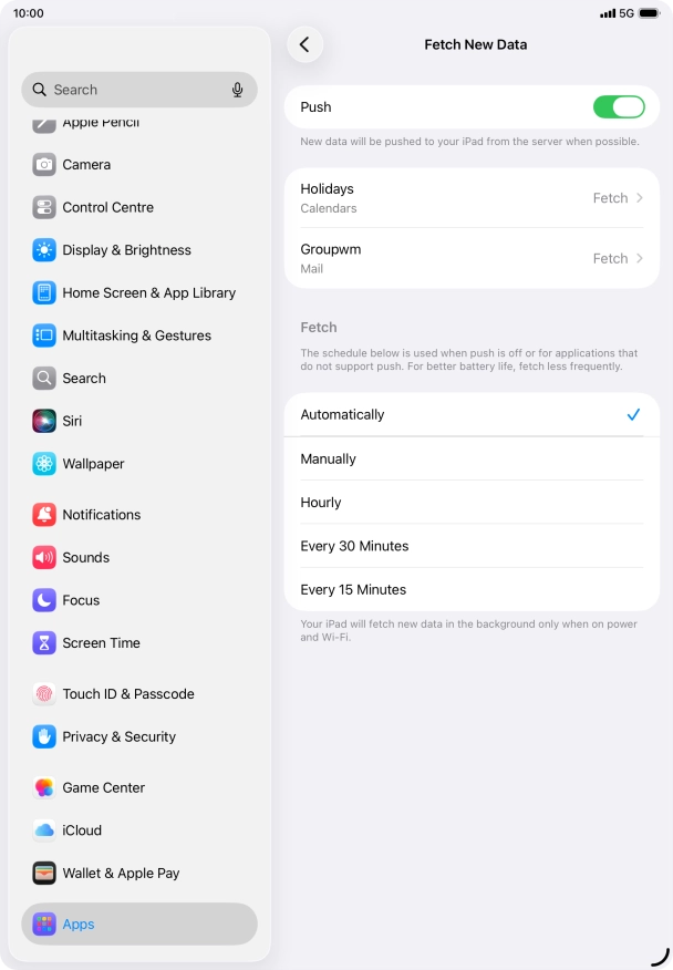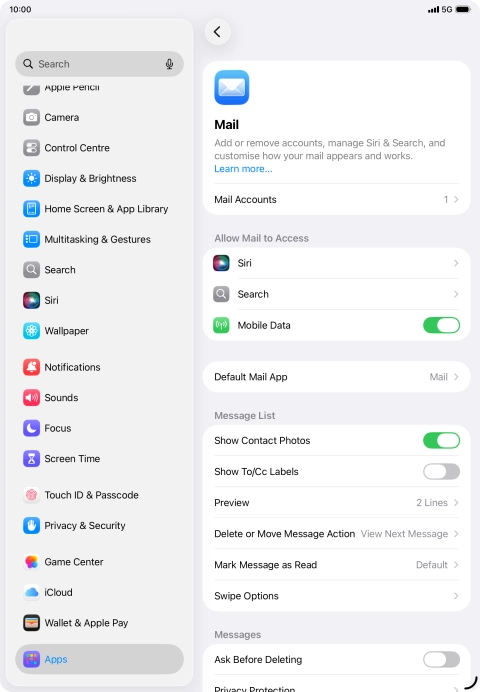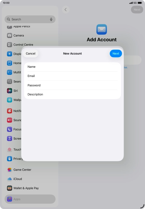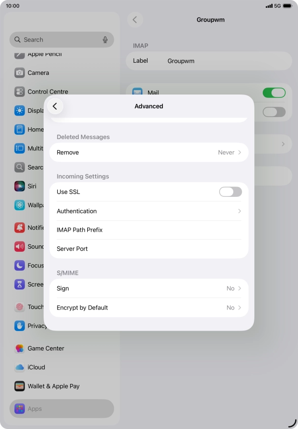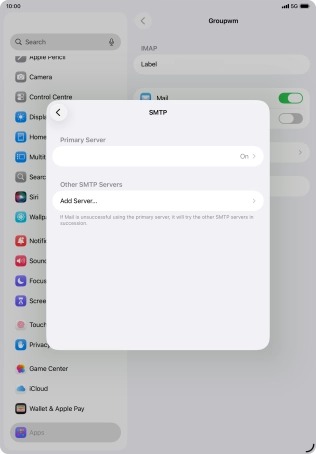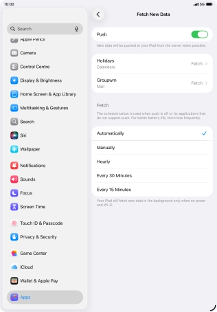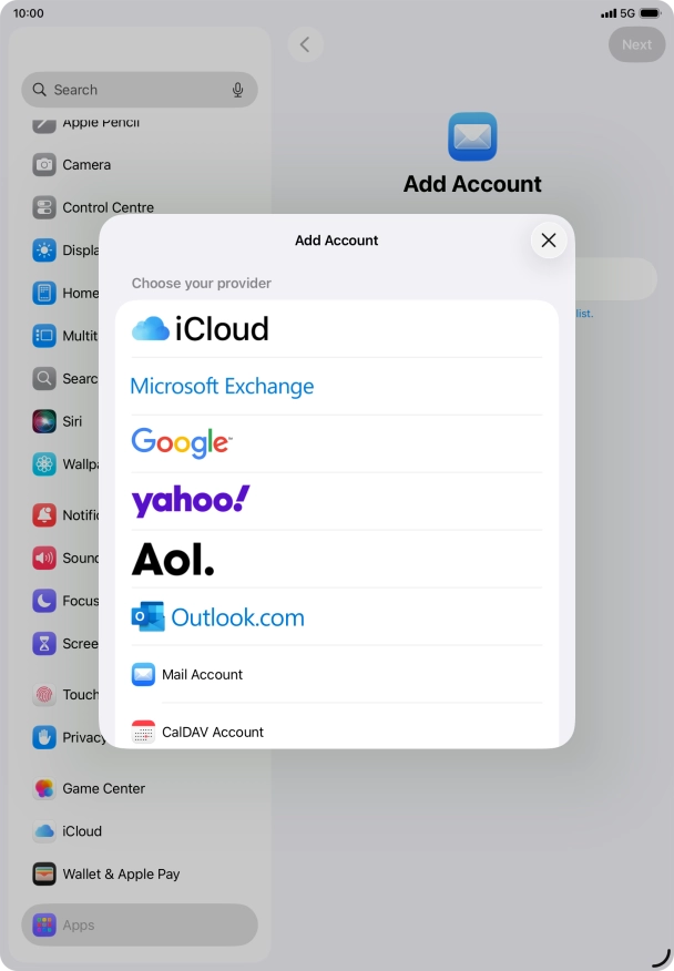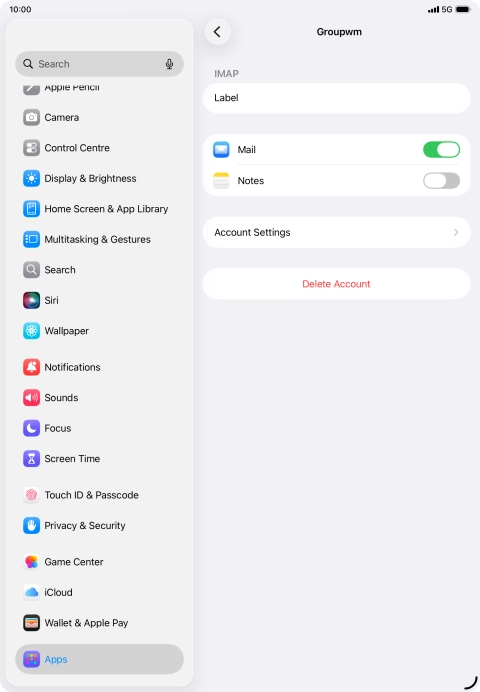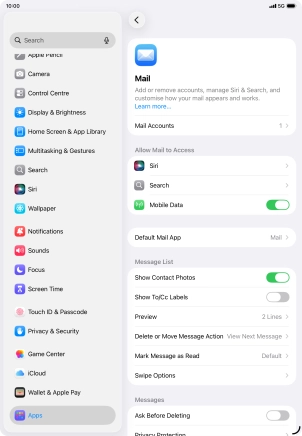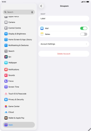 Press the required email account and follow the instructions on the screen to select settings for the specific account.