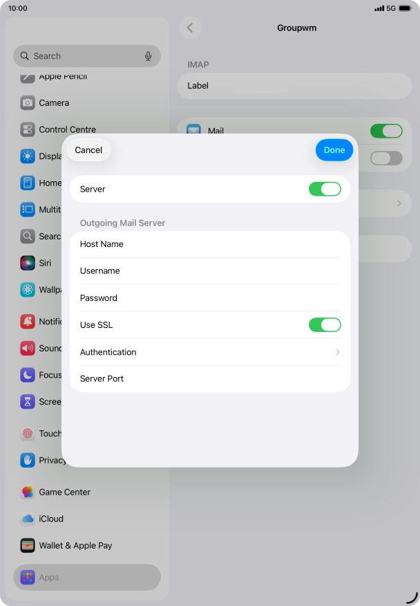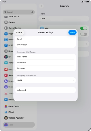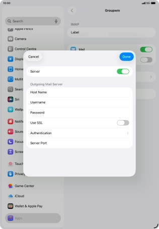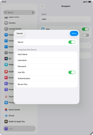 Press Password and key in the password for your email account. Please note that if you're using Vodafone's outgoing server, leave the password field empty.