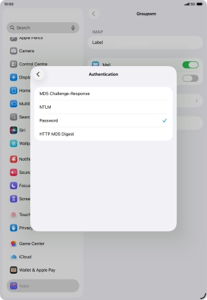 Press Username and key in the password for your email account. Please note that if you're using Vodafone's outgoing server, leave the password field empty.