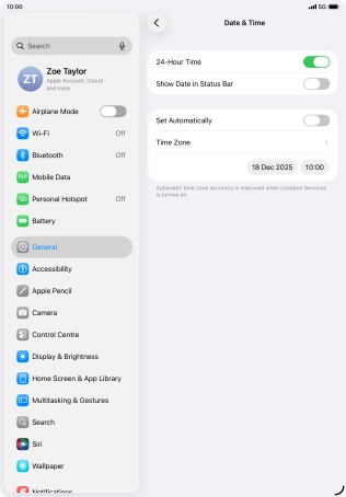 2 Turn on automatic update of time zone, time and date.