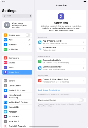 Press Screen Time and optionally select the required member of your family group.