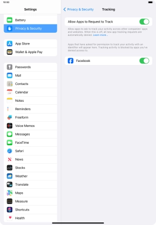 Press the indicator next to "Allow Apps to Request to Track" to turn the function on or off.