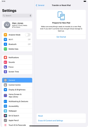 Press Transfer or Reset iPad.