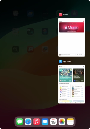 Slide your finger slowly upwards starting from the bottom of the screen until the list of running applications is displayed.