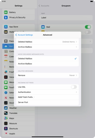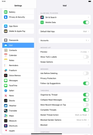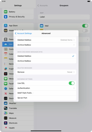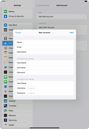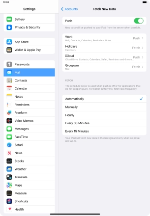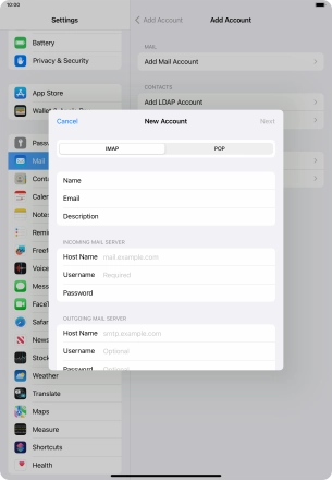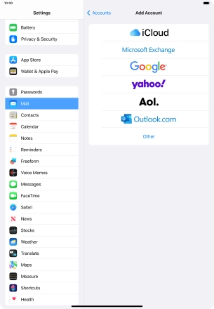 Press the required email account and follow the instructions on the screen to select settings for the specific account.