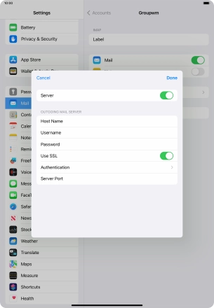 10. Enter outgoing server
