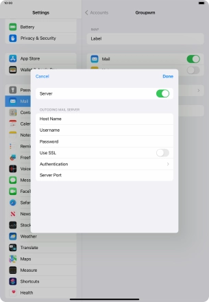 Press Username and key in the username for your email account. Please note that if you're using Vodafone's outgoing server, leave the username field empty.