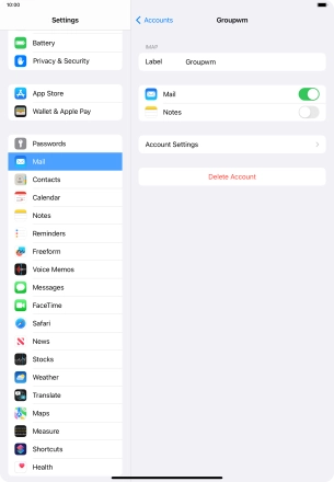 Press the name of the email account you've just set up.