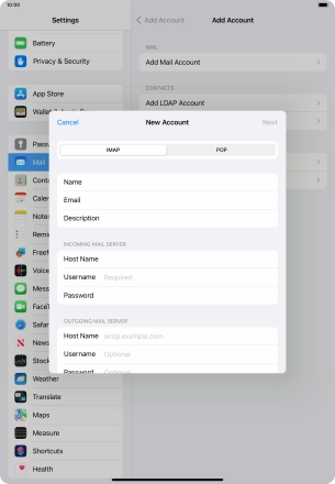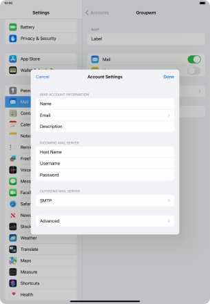 Press Username and key in the username for your email account.