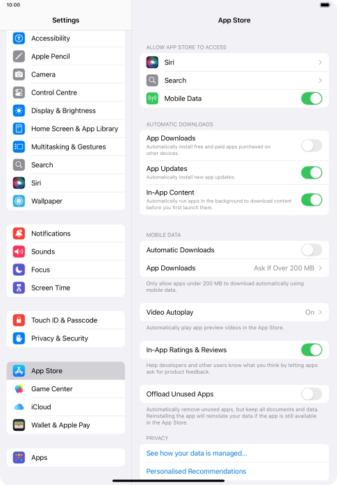 Press the indicator next to "App Downloads" to turn the function on or off.