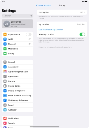 If you turn on the function, your tablet can send its current position regularly to iCloud using GPS and Wi-Fi networks.