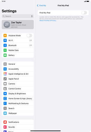 2. Turn on Find My iPad