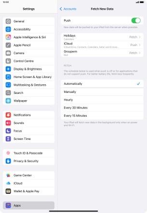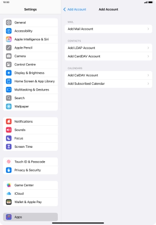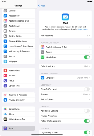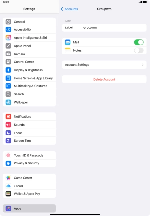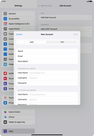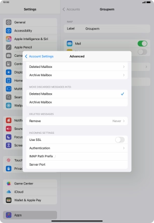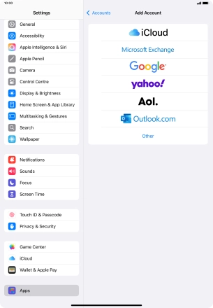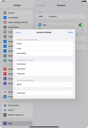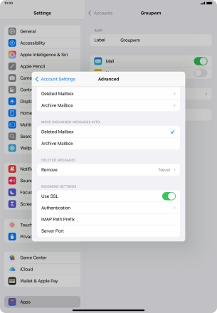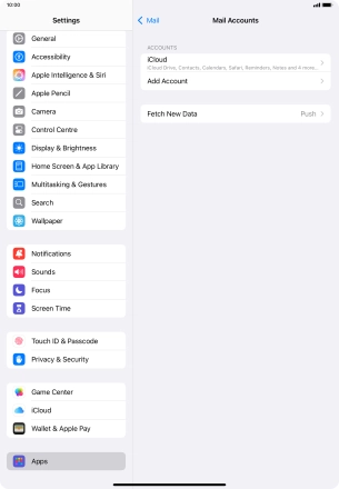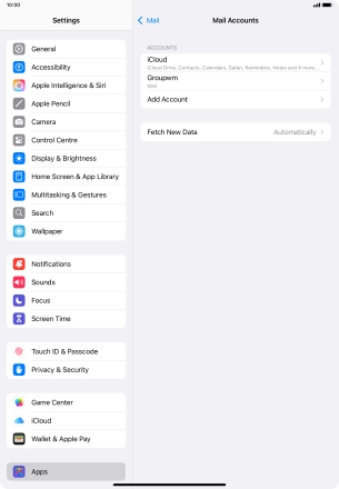 Press the required email account and follow the instructions on the screen to select settings for the specific account.