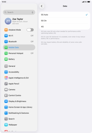 Select network mode on your Apple iPad Air 11 (M3) (2025) iPadOS 26