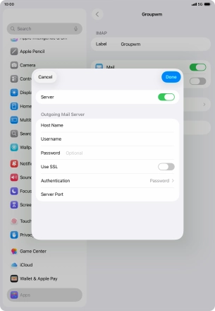 Press Username and key in the password for your email account. Please note that if you're using Vodafone's outgoing server, leave the password field empty.