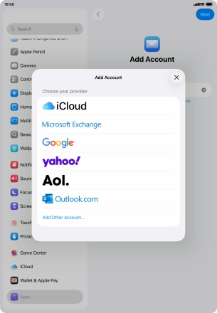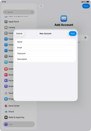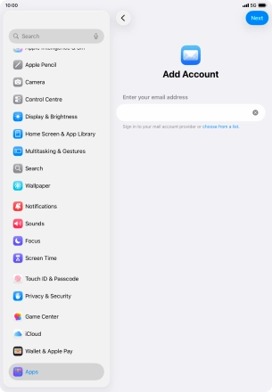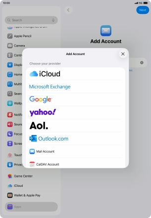Press the required email account and follow the instructions on the screen to select settings for the specific account.