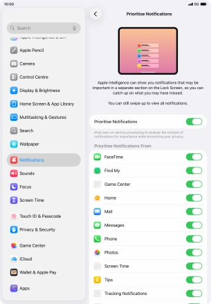 You can use Apple Intelligence to prioritise important and time-sensitive notifications. High priority notifications appear at the top of the notification list. To use the function, you need to turn on Apple Intelligence.