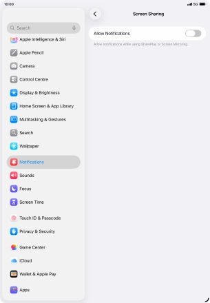 Press the indicator next to "Allow Notifications" to turn the function on or off.
