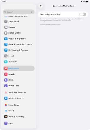 Press the indicator next to "Summarise Notifications" to turn the function on or off.