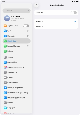 Press the indicator next to "Automatic" to turn automatic network selection on or off.