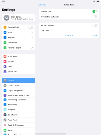 Set date and time on your Apple iPad Air 13-inch (M2) iPadOS 17