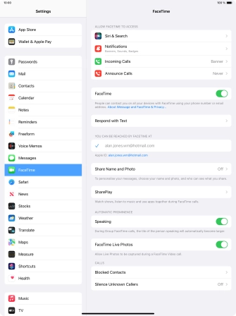 Press the required setting below "YOU CAN BE REACHED BY FACETIME AT".