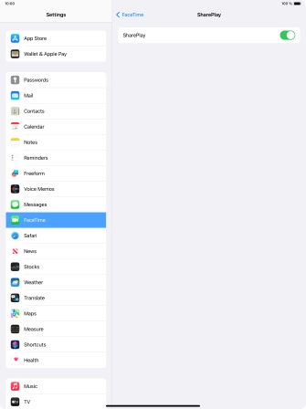 Press the indicator next to "SharePlay" to turn the function on or off.
