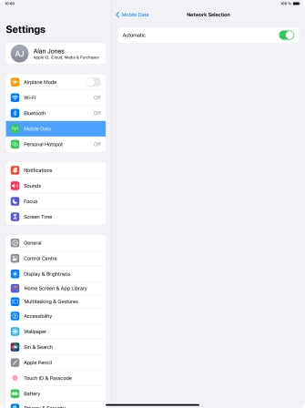 Press the indicator next to "Automatic" to turn automatic network selection on or off.