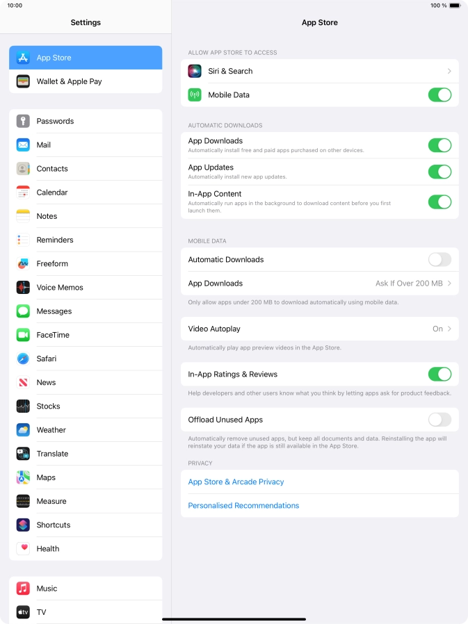 Turn automatic synchronisation of apps and app content on your Apple iPad Air 13-inch (M2) iPadOS 17 on or off