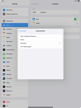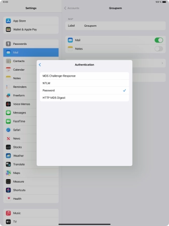 Press Password and key in the password for your email account.