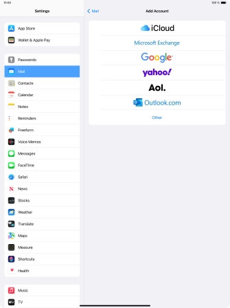 If this screen is displayed, you email account has been recognised and set up automatically. Follow the instructions on the screen to key in more information and finish setting up your tablet.