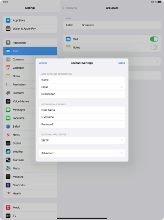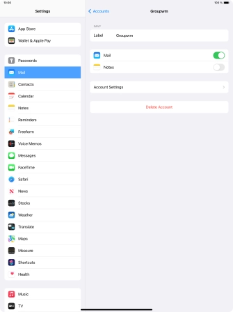 Press the name of the email account you've just set up.