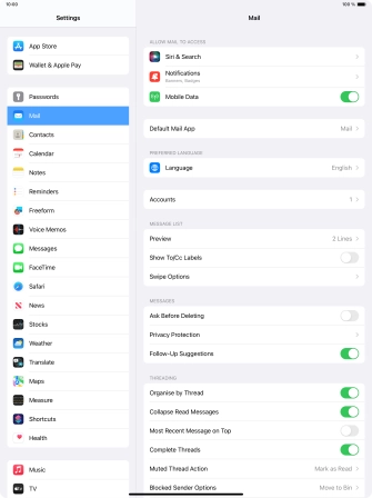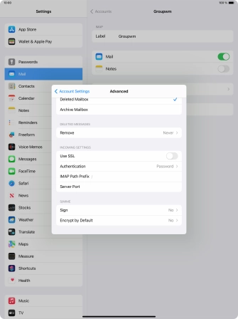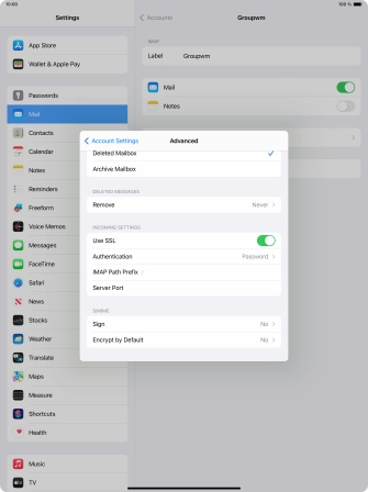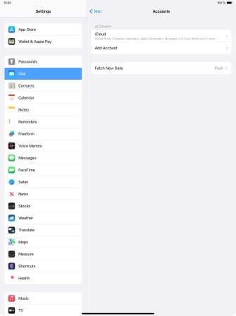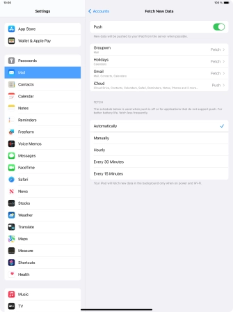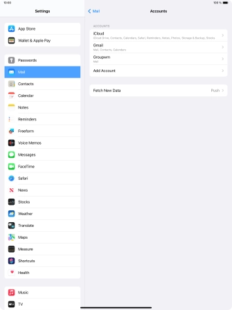 Press the required email account and follow the instructions on the screen to select settings for the specific account.