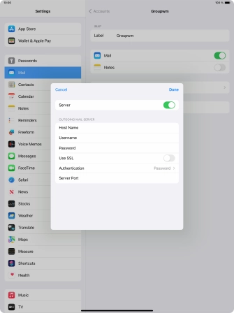 Press Password and key in the password for your email account. Please note that if you're using Vodafone's outgoing server, leave the password field empty.