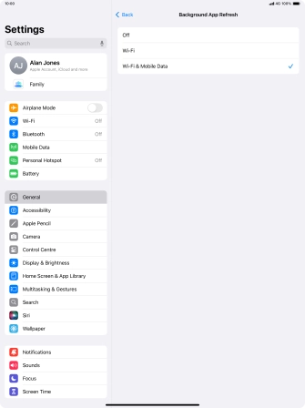 To turn off background refresh of apps, press Off.