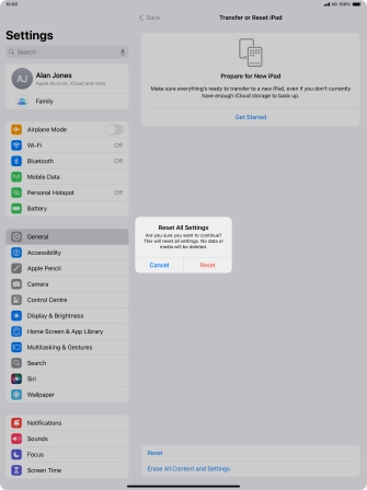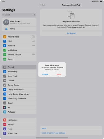 Key in the password for your Apple ID and press Turn Off. Wait a moment while the factory default settings are restored. Follow the instructions on the screen to set up your tablet and prepare it for use.