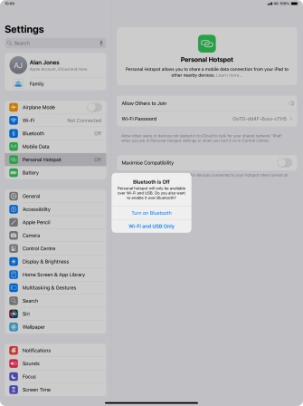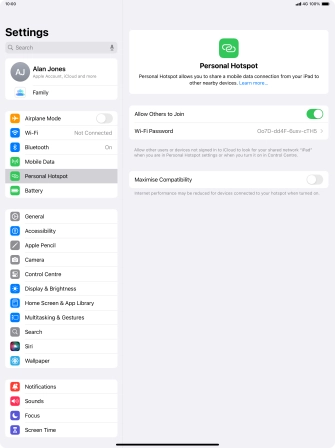 Use your Apple iPad Air 13-inch (M2) iPadOS 18 as a personal hotspot