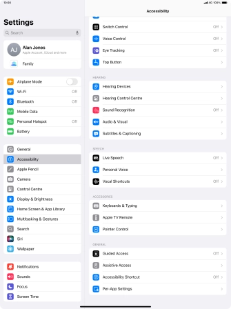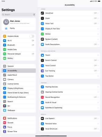 You can select different settings for tablet interaction control, e.g. AssistiveTouch, Voice Control and Eye Tracking making it easier to navigate your tablet.