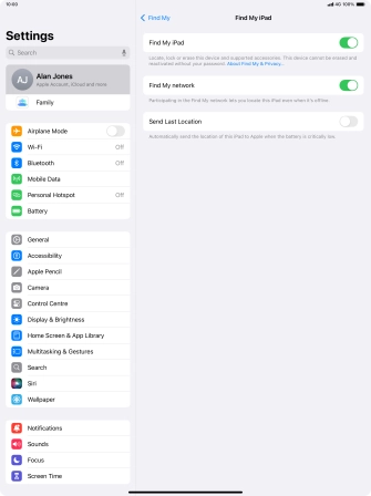 If you turn on offline finding, your tablet can use other nearby Apple devices to register its current position via Bluetooth. To use the function, your tablet and Bluetooth need to be turned on.