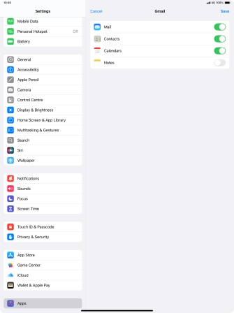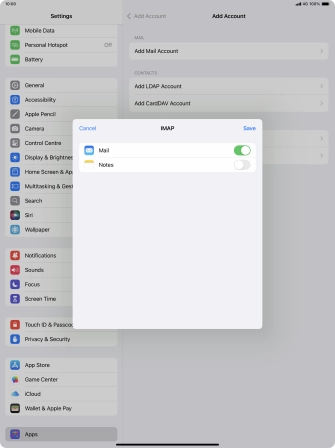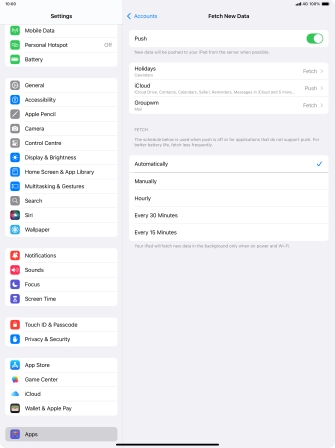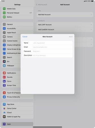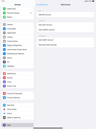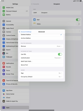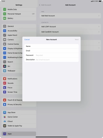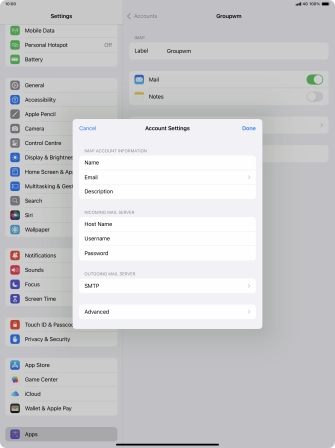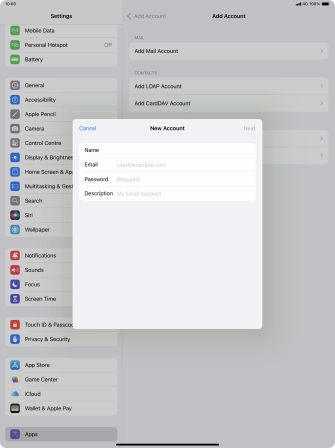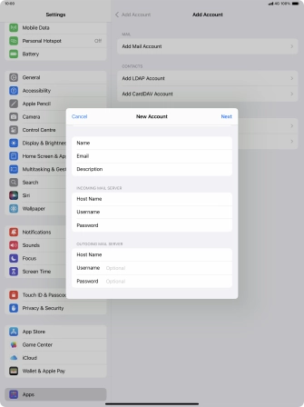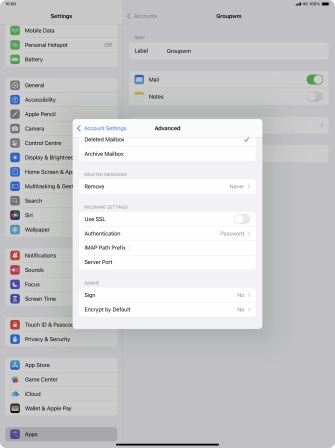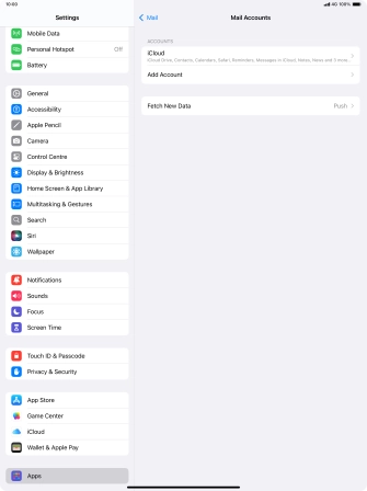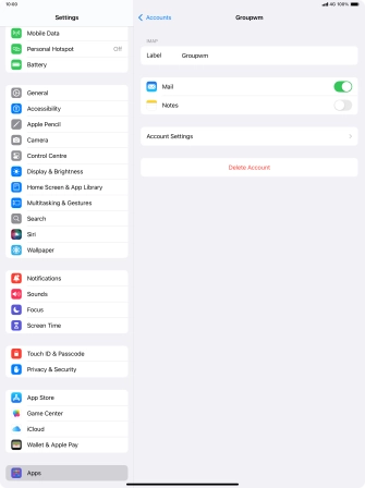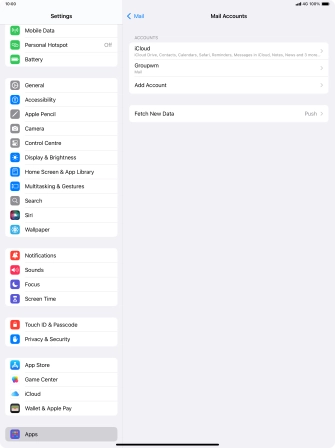 Press the required email account and follow the instructions on the screen to select settings for the specific account.
